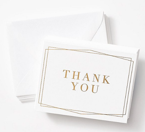 We offer a growing selection of stationery, physical gift cards (UberEats, Panera, Amazon, Starbucks), and wax-seal add-ons.